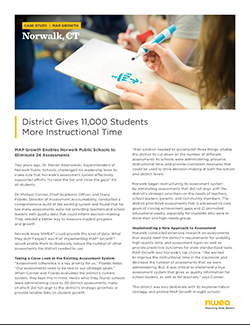 Using MAP Growth gave educators such reliable and actionable data that they could eliminate 24 other assessments they’d been using to fill various gaps. It also helped educators focus on—and accomplish—other key priorities, such as ensuring educational equity for 11,000 students, preserving instructional time, and closing achievement gaps. By shifting to a data-driven approach and using consistent measures between schools, Norwalk is beginning to see an organizational change around how the district uses assessments and makes decisions.